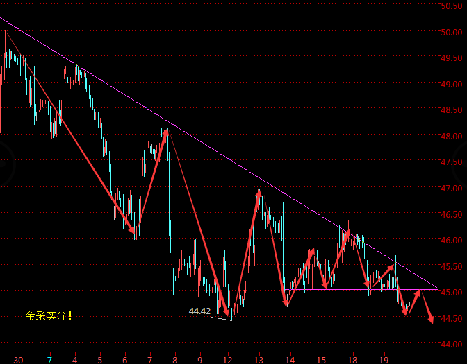 操作上:反弹45.7美元附近做空,止损46美元,目标看45.1美元附近。下方44.3美元附近做多,止损44美元,目标看44.8-45美元附近