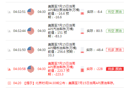 ⑤ 22:30 美国至7月15日当周EIA原油库存