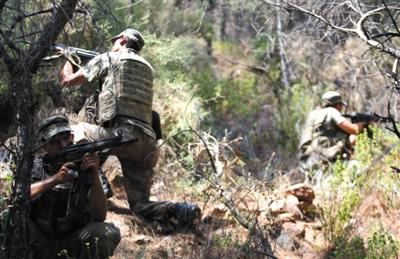 7月20日,土耳其士兵在搜捕涉嫌参与军事政变的失踪军事人员。