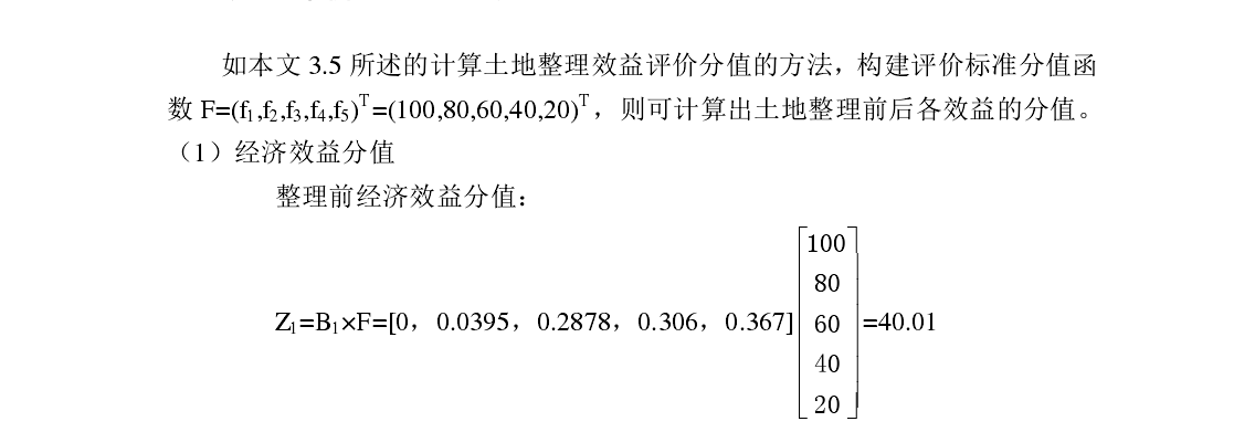 感谢大家帮忙看看,写论文要用到模糊综合评价法,在最后计算分值的时候,看文献方法时看到用构建标准分值函数与综合效益隶属度矩阵进行合成计算,具体怎么计算,请教下大家,请说明下具体如何计算得出的结果,具体详见下图:
