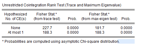 急求急求急求eviews中Fisher(combined johansen)检验结果怎么解释?急求急求急求