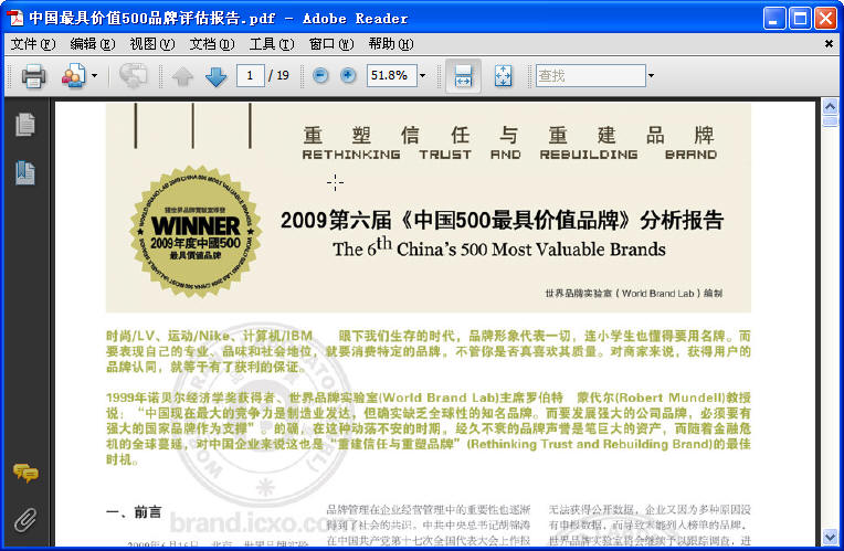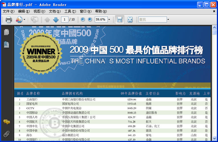 2009年(第六届) 中国500最具价值品牌排行榜隆重揭晓