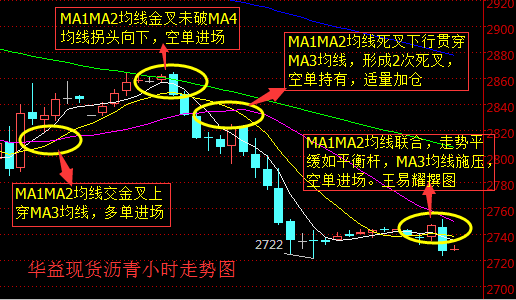 跌至2830附近MA1、MA2均线再次贯穿MA3均线,形成双重死叉,此前持有空单者更应坚定持有,并且适当加仓操作。