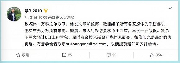 值得一提的是,此前,华生在微博表示,“有人翻出十几二十年前的事对我造谣污蔑”。待文章全完后,他将开媒体见面会,回答包括海归创业第一桶金、经商历程的任何问题。