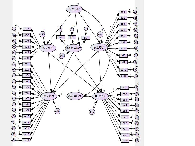小白求助AMOS模型结构,计算无结果,要怎么改