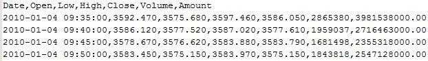 更新一下最近 6 年的数据。文件是 CSV 格式,包含了每 5 分钟的起始、结束、最高、最低价,以及成交量和成交额信息。
