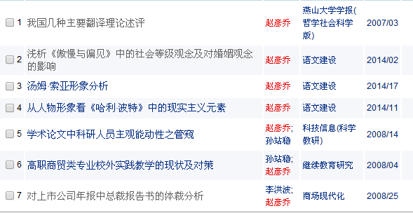 查阅中国知网和国外知名网站,以赵彦乔为发文作者的所有文章如下(发文单位居然不是该大学外国语学院,没有一篇是CSSCI或中文核心)。以严谨为发文作者的文章如下(一篇为第1作者,一篇为第2作者,没有一篇是CSSCI或中文核心)。