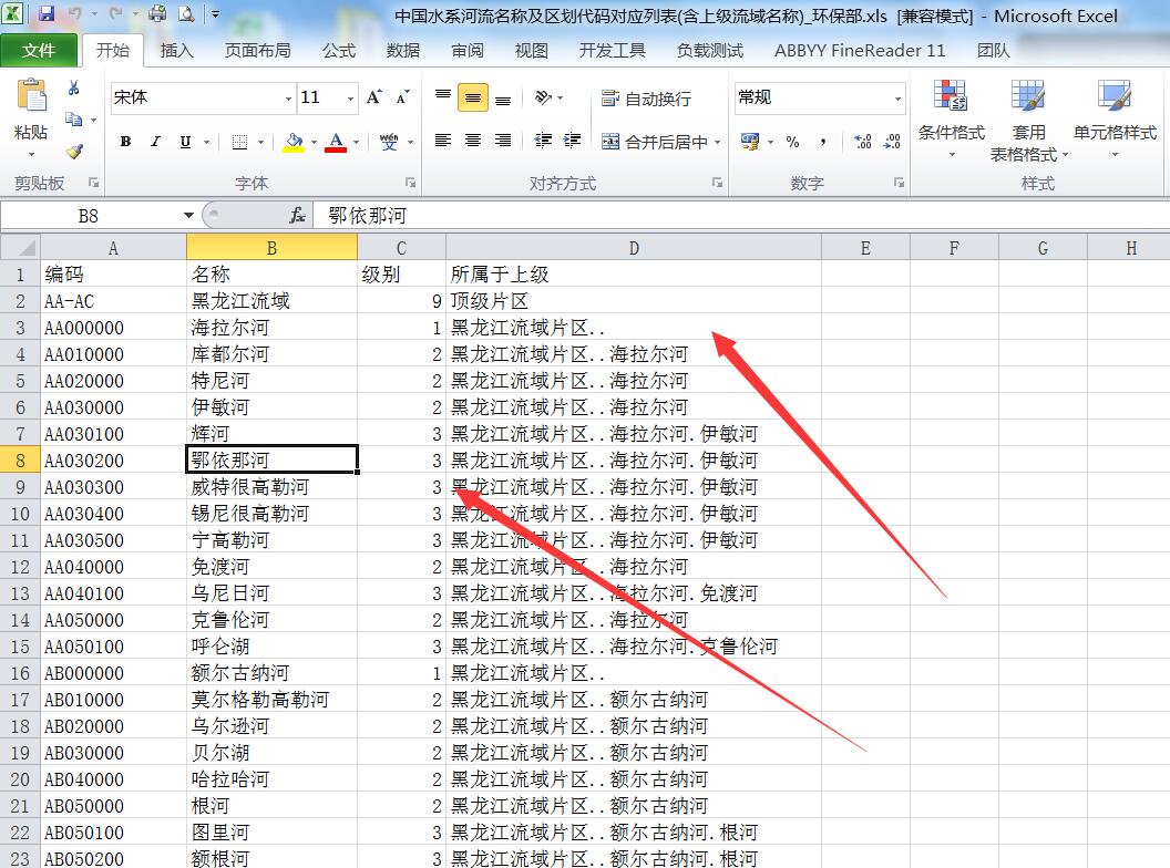 中国水系河流名称及区划代码对应列表(含上级流域名称)_环保部.xls