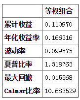 个人认为,不管在何种情况下,等权重的方式总不是最差的投资组合,我们来看看其表现: