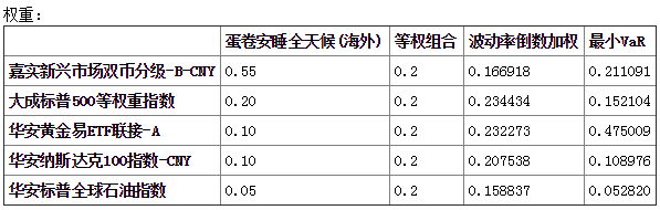 我在网上找到了蛋卷安睡全天候(海外)开售时所公布的各个基金的配比: