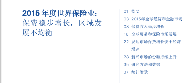 瑞再SIGMA2016:2015保险综述