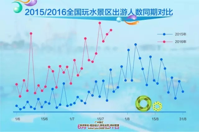 近日,国内在线旅游网基于其平台大数据发布《2016夏季玩水报告》。《报告》显示:进入七月份以来,国内各大玩水类景区游客日均入园量持续暴涨,游玩人数同比去年上涨超过200%;广东、上海、北京、江苏、浙江等地游客热情最高,80后、90后是玩水主力军;各类嗨到爆的水上乐园最受青睐,其次是水景观光和漂流。