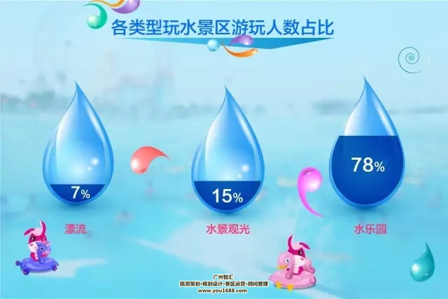 今年夏季,拥有游泳池、人工冲浪、水上滑梯等多种水上娱乐设施的水乐园型景区,以峡谷、湿地等为基础打造的漂流型景区,以及瀑布水景、游轮观光、湿地公园等观水型景区,都是游客热衷的玩水目的地。其中,水乐园最受游客偏爱,在玩水人群中,有78%游客选择此类景点。