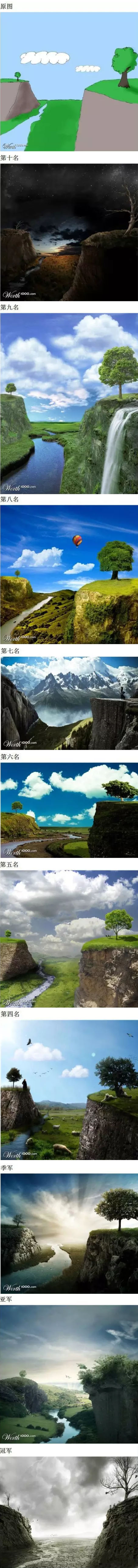从前有个家伙手绘了一张图,希望各路高手能把它PS得真实一些。结果各路牛B的作品出来了!