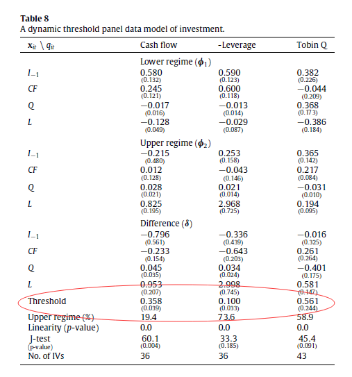 冷眼观蟹 发表于 2017-11-11 10:13 请问有谁知道结果中阈值threshold的p值是检验什么的?检验阈值变量是否外生还是检验其是否是虚假阈值?文献 ...