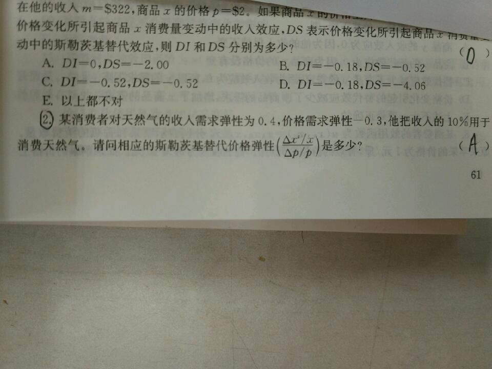 提示:找一本高级微观经济学参见其中的Slutsky方程的弹性形式。