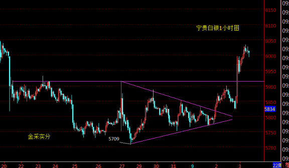 宁贵白银:周五非农利好之下,白银同样走出强势性发展,相较于黄金来说,白银表现更为强势,周五强势拉涨于6000以上,有效的打破前几个交易日的5750/5900的区间性震荡,走出破位性延续,短期内的强势同样将得以延续;