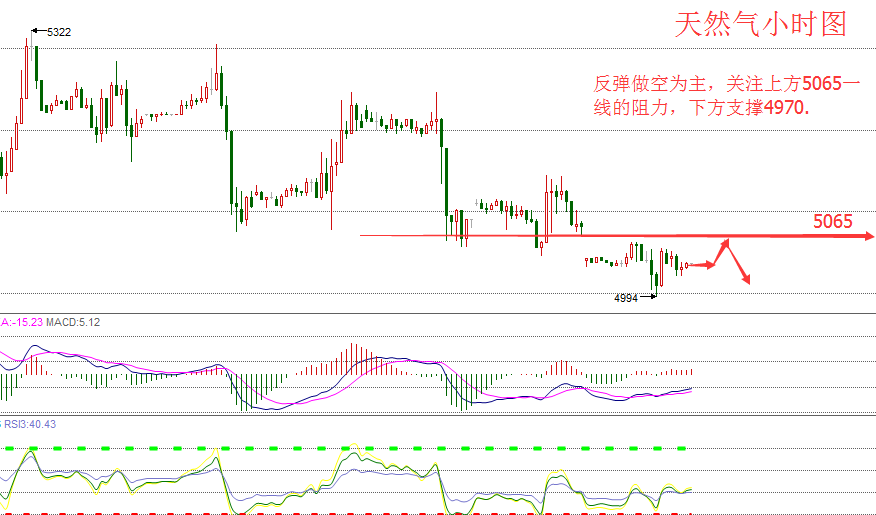 天然气建议轻仓布局空单,目标5000关口,止损35点。