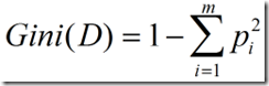 Gini指标在CART中使用。Gini指标度量数据划分或训练元组集D的不纯度,定义为: