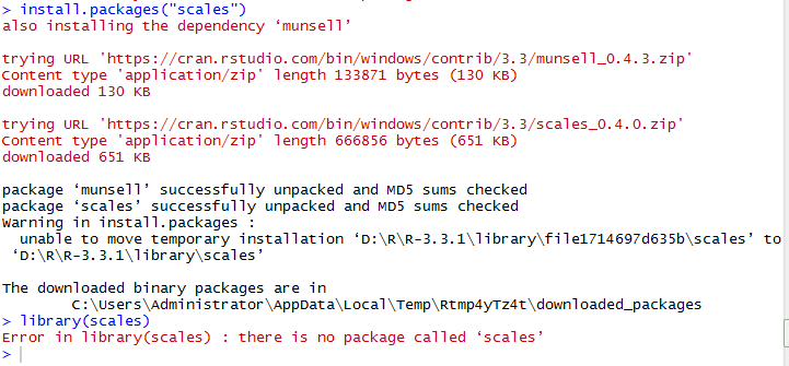 jgchen1966 发表于 2016-9-22 15:05 网络连接,出问题。。最好用R Console 中的 packages 栏下 install package(s) ,因为有这样一个要求: “ ...