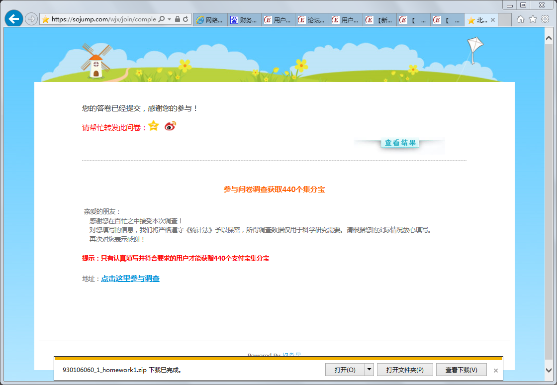 yiyi23ttt 发表于 2016-9-23 15:04 关于北京公共交通情况的调查问卷,填完后下面上传下附件,我会拍下。谢谢。 https://sojump.com/jq/9632 ...