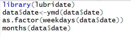 数据data里面的date想加上星期几,用data美元符号dow<-as.factor(weekdays(data美元符号date))提示