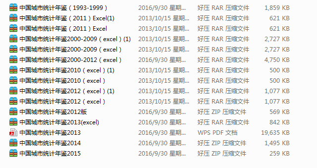 15年中国城市统计年鉴(部分)