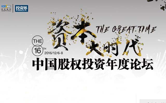 资本大时代已经到来!你将如何选择?又将扮演怎样的角色?2016年12月6-8日,清科集团、投资界联合主办第十六届中国股权投资年度论坛,汇集股权投资界巨匠精英,以趋势、策略、行业角度剖析这个时代。让我们花上3天时间,以6个影响力对话、10个主题专场、N+演讲与分享,共同寻找问题的答案!