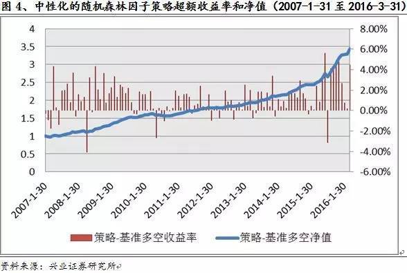 基于Smart Alpha的选股策略 在每个月的月底,先剔除不能正常交易、涨跌停或者被特别处理的股票。为了规避行业的风险,在剩下的股票池中我们在每个中信一级行业内按照行业市值中性化的随机森林因子对股票进行降序排列,选择前10%的股票形成投资组合。以中证500为基准指数,每个行业以其在中证500中的权重加权,行业内的股票等权。