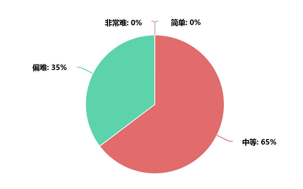 65%的CVA持证人认为科目二Excel案例建模考试难度中等,另有35%的持证人认为科目二考试偏难,没有持证人认为科目二考试简单或非常难。