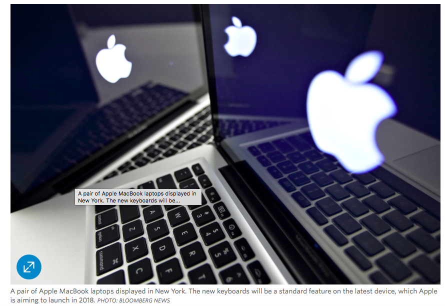 The new keyboards will be a standard feature on MacBook laptops, and will be able to display any alphabet, along with an unlimited number of special commands and emojis, people familiar with the plans said.