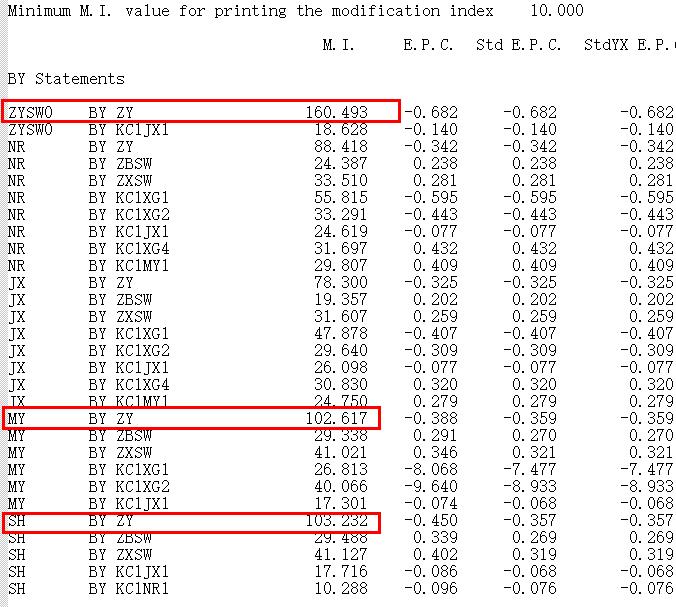 WRMR=1.793, 如何根据MI修改呢?按理应该先改mi大的,如图1中红色框内的,但是ZY本来就是属于ZYSW0;图2 中 红框又是什么意思呢?