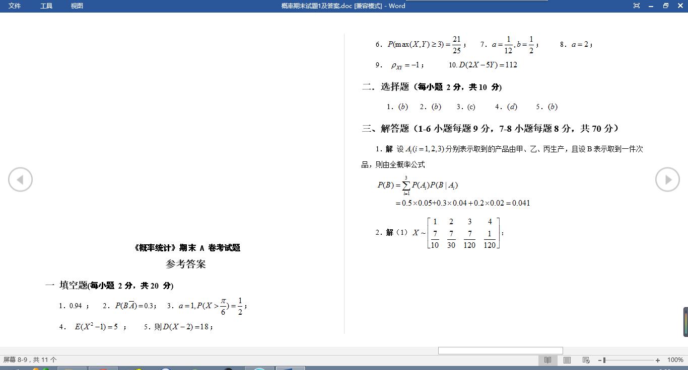 《统计学(第三版)》贾俊平的试题 人大期末试题