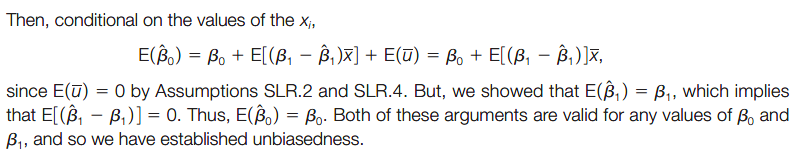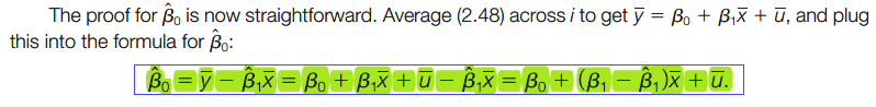 jodie 发表于 2016-10-26 19:06 看伍德里奇第6版β0 hat无偏性的证明有点不懂 第一步到第二步是怎么来的呀 u的均值是等于0吗