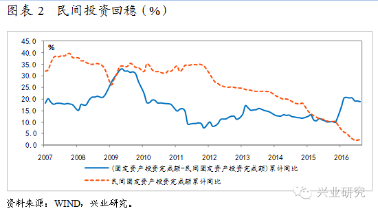 9月固定资产投资累计同比增长8.2%,较8月反弹0.1个百分点。其中民间投资增长2.5%,较上月反弹0.4个百分点,这与同期制造业投资的回稳(9月3.1% VS 8月2.8%)相互印证,因为整个制造业投资的87%为民间投资,而整个民间投资的45%为制造业投资。但是在去产能的大背景下,民间投资和制造业投资能否持续企稳仍存在疑问。