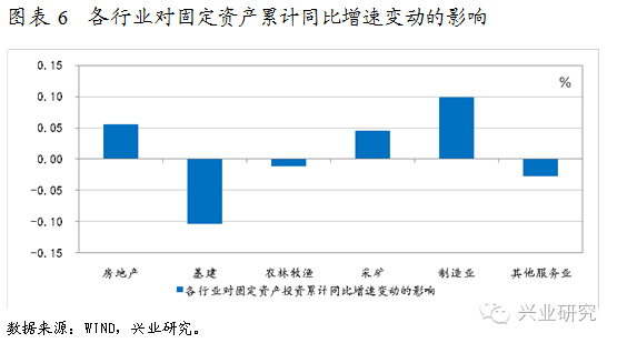 最大的变数来自基建投资。9月基建投资累计同比17.9%,已是连续第三个月放缓,且对整体投资增速的拖累是所有行业中最大的,见图表6。这可能是因为在房地产市场繁荣的情况下,官方有意控制积极财政实施力度。