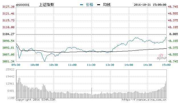 截止收盘,沪指报3100.49点,跌3.78点,跌幅0.12%,沪指10月收涨3.2%。深成指报10704.30点,跌6.74点,跌幅0.06,创业板报2159.76点,跌5.67点,跌幅0.26%。