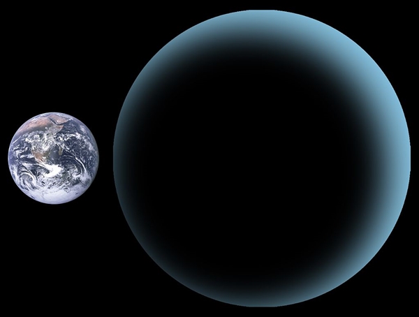 “第九大行星”被假定为拥有2~4倍于地球的直径,并且和诸如海王星等冰态巨行星相似。图片来源:wikipedia