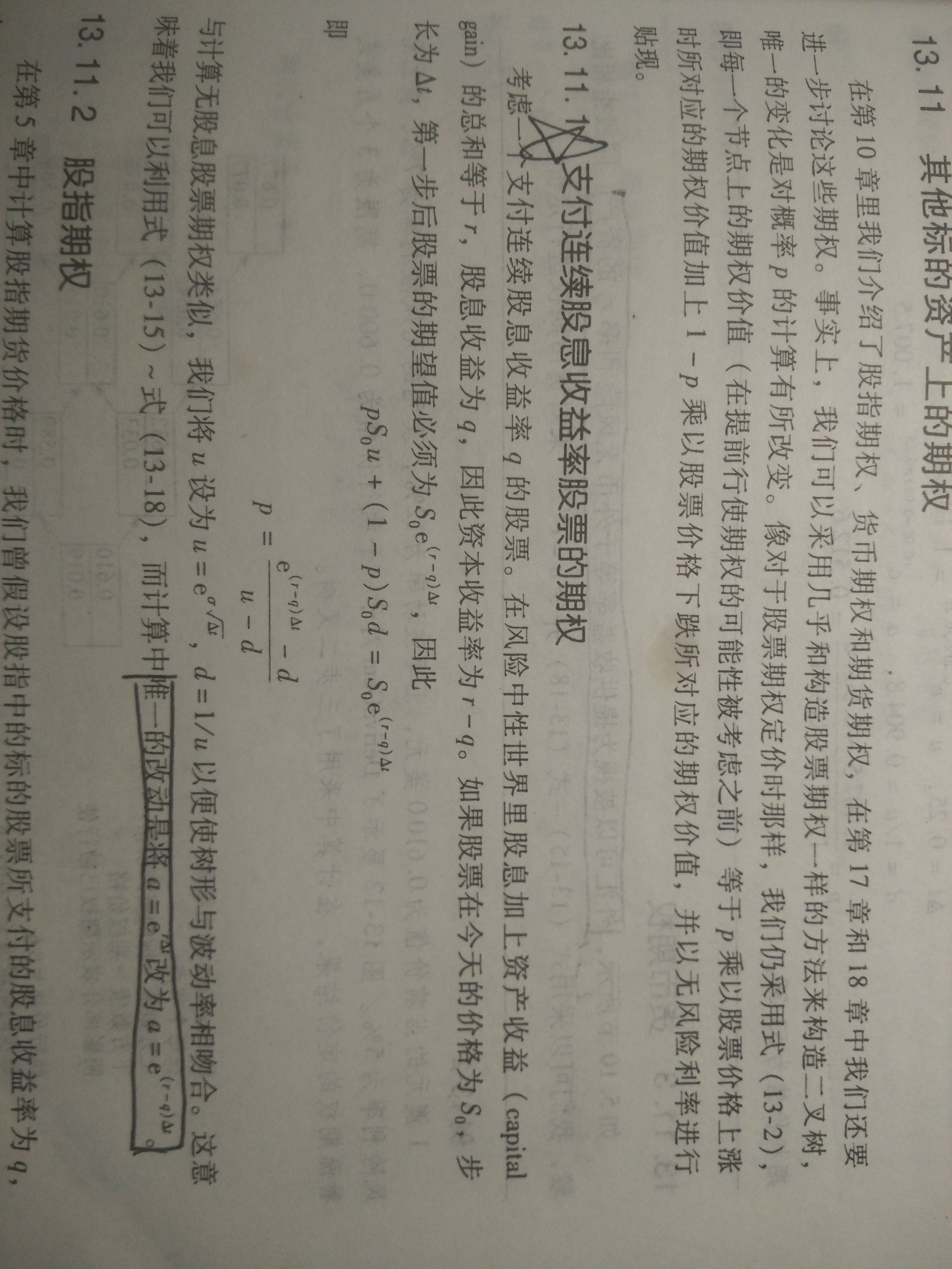 crossbone254 发表于 2016-11-5 12:19 Hull这个是支付连续的股息率,Shreve的是离散地支付股息,所以最后公式不同,Hull这个严格来说其实并不能用 ...