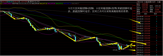多头强势突破2250,看涨可追涨,空头跌破2150看空可追空,注意带好止盈止损