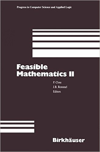 Perspicuity is part of proof. If the process by means of which I get a result were not surveyable, I might indeed make a note that this number is what comes out - but what fact is this supposed to confirm for me? I don't know 'what is supposed to come out' . . . . 1 -L. Wittgenstein A feasible computation uses small resources on an abstract computa- tion device, such as a 'lUring machine or boolean circuit. Feasible math- ematics concerns the study of feasible computations, using combinatorics and logic, as well as the study of feasibly presented mathematical structures such as groups, algebras, and so on. This volume contains contributions to feasible mathematics in three areas: computational complexity theory, proof theory and algebra, with substantial overlap between different fields. In computational complexity theory, the polynomial time hierarchy is characterized without the introduction of runtime bounds by the closure of certain initial functions under safe composition, predicative recursion on notation, and unbounded minimization (S. Bellantoni); an alternative way of looking at NP problems is introduced which focuses on which pa- rameters of the problem are the cause of its computational complexity and completeness, density and separation/collapse results are given for a struc- ture theory for parametrized problems (R. Downey and M. Fellows); new characterizations of PTIME and LINEAR SPACE are given using predicative recurrence over all finite tiers of certain stratified free algebras