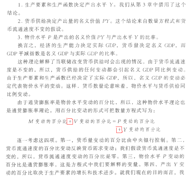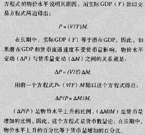 则方程两边求增长率,则到 价格的增长率(即通货膨胀率)= 货币供给增长率—实际产出增长率。