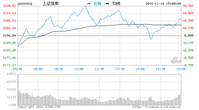 11月14日消息,今日两市受期货市场震荡影响,早盘低开,煤炭。开盘后,券商、煤炭等权重板块迅速冲高,资源股由跌转涨,市场明显回暖。盘中一带一路板块再度爆发,中铁二局(15.690, 1.43, 10.03%)涨停,沪指冲上3200点,高见3221.46点。午后中国建筑(8.080, 0.01, 0.12%)小幅跳水,情绪迅速感染相关板块个股,两市盘中一度下行翻绿,沪指回踩3200点下方,临近尾盘时市场回暖。