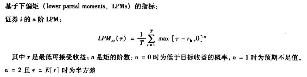 这个没法证明!就是风险的代理指标。有的人认为风险是标准差,有的人认为风险是负的收益率组成的标准差,也就是lpm。收益率序列减去均值(或者减去0),将大于0的剔除,只计算小于零的那些序列的标准差。公式说的比较简明。