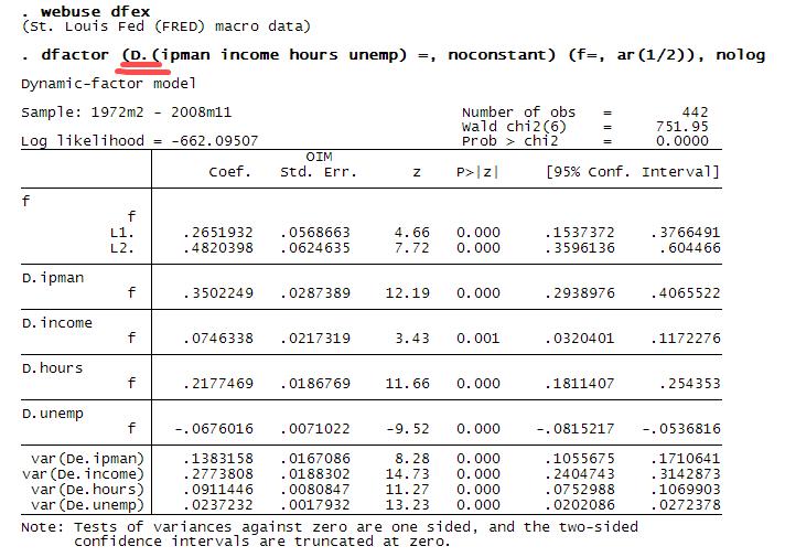 这个动态因子模型用stata软件运行的结果是什么意思?