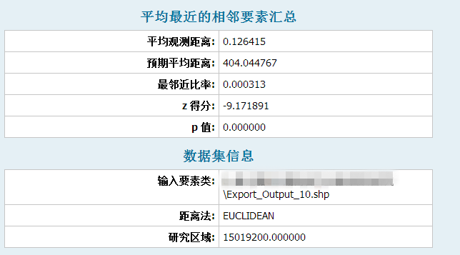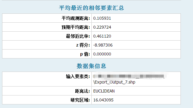本人采用arcgis的“平均最相邻要素”根据计算某类景点的最邻近指数,点的shp文件和地图地图已经投影,单位为米。