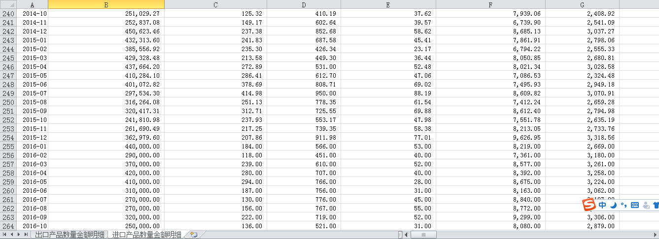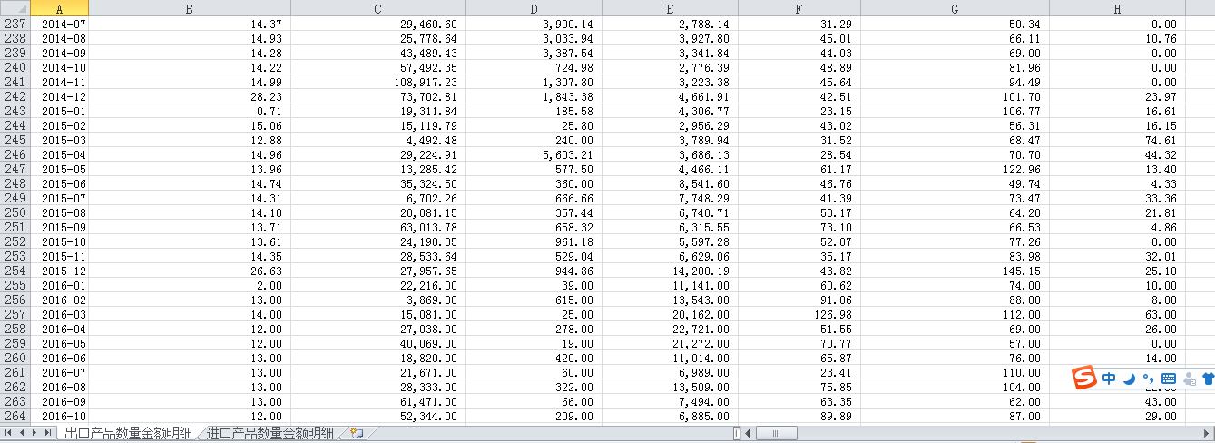 1995年-2016年中国主要进出口商品数量金额明细月度数据(按产品类别分类)