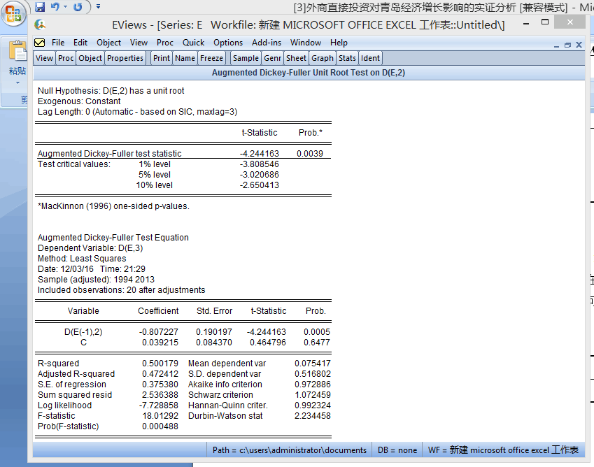 crystal8832 发表于 2016-12-5 20:59 补充一句,如果您想做的是EG检验,那么记得平稳性检验的临界值需要查表。