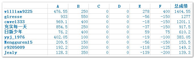 A—工资/100,B—版主议事厅得票数*50,C—被设置精华贴数*200,D—伯乐工程贡献数*300,E—版面访问量月增长率*1000,F—其它事项加分。