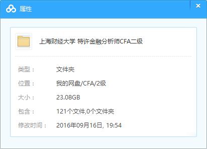 wangyuandong129 发表于 2016-12-11 10:55 从同学那求来的CFA二级视频课,一共121个视频。 有需要的朋友拿走。